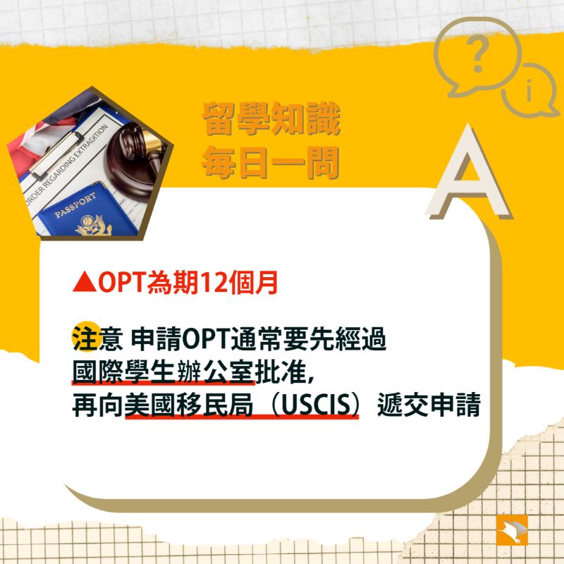 ![]() 不同學校對於OPT申請都有各自的流程和要求,但大致上需要以下準備資料。 詳細內容請參考各個學校國際學生辦公室的官方規定。 以下是申請OPT要準備的項目 ![]() ![]() ![]()