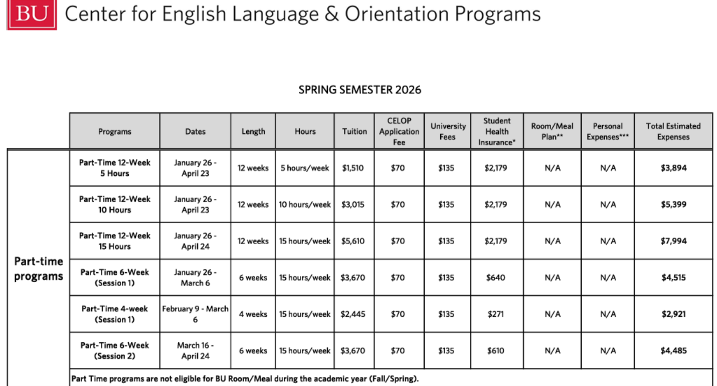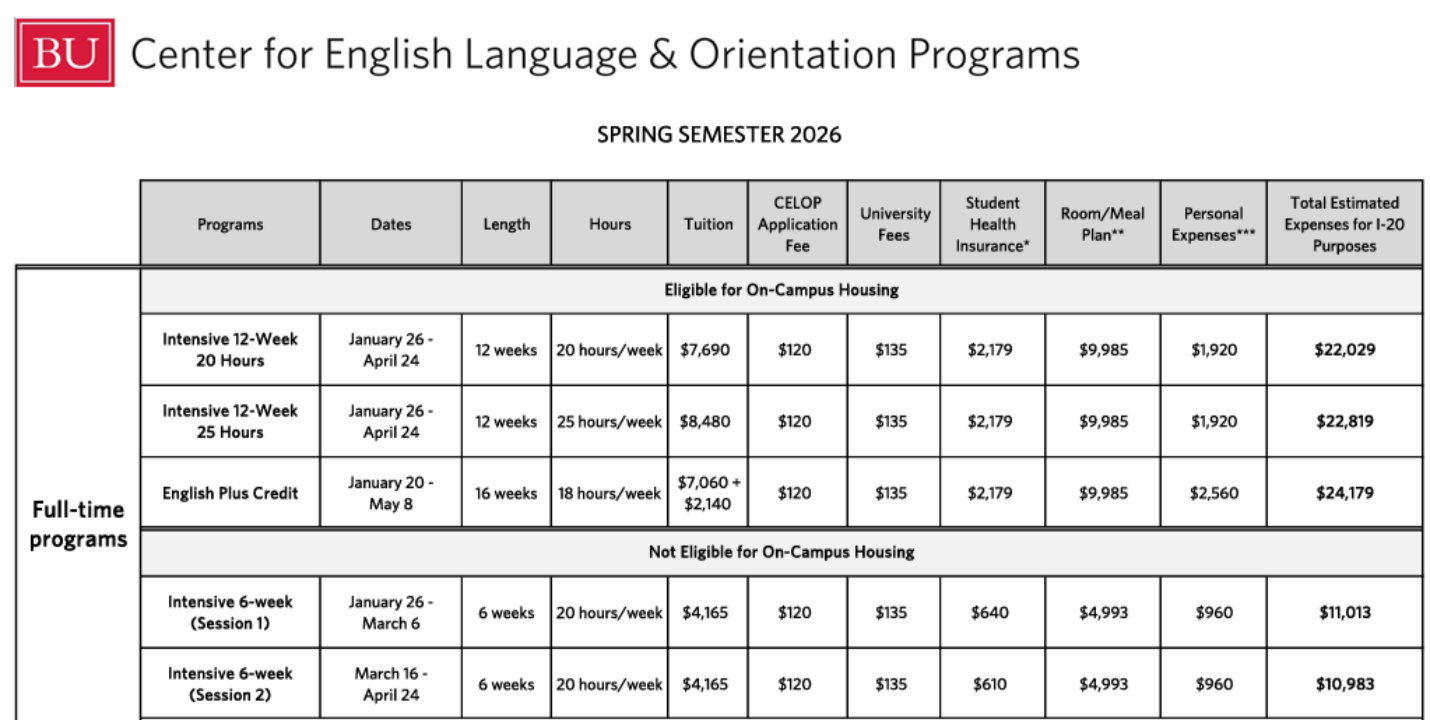 - 可以選擇秋季和春季學期入住波士頓大學宿舍,前提是參加符合資格的課程。