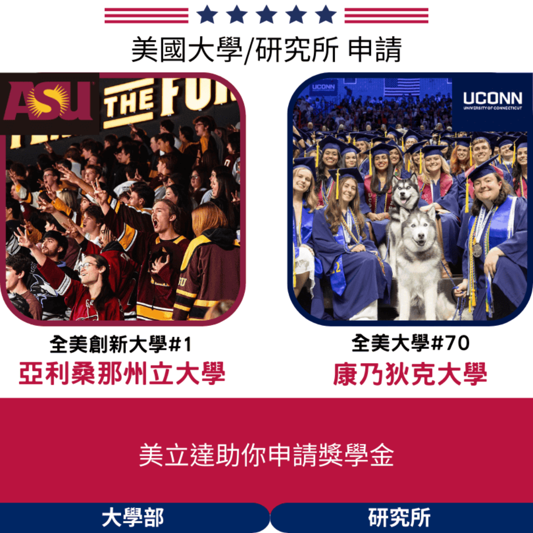 美立達留學為Arizona State University、University of Connecticut台灣代理留學代辧公司