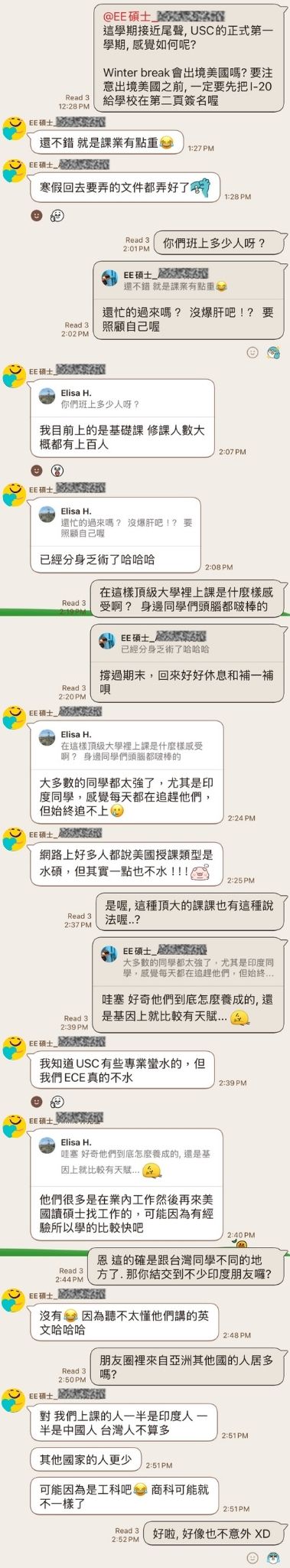 "現在我已經要結束USC的第一學期。曾經看網路留言說美國授課型碩士很水,我想說: 我們ECE科系真的一點都不水!課業很重,很累,但值得!身邊同學都很強,尤其是印度同學,感覺每天都在追趕他們,但始終追不上...