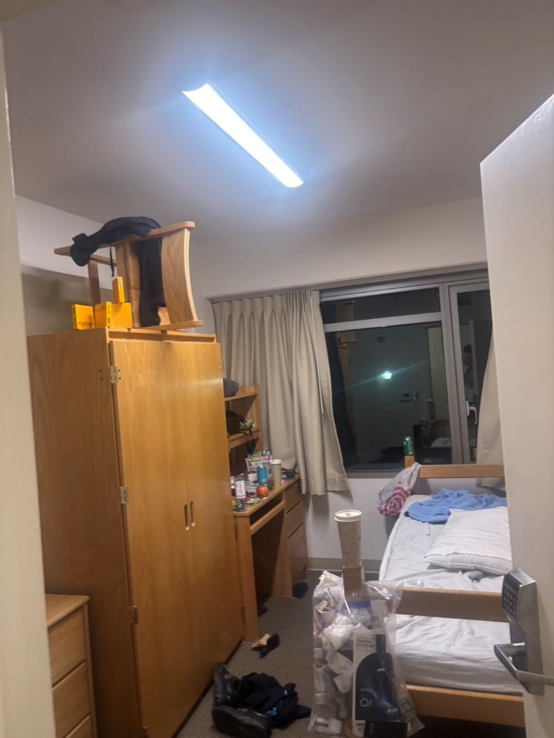 在 UCLA 住校我覺得很享受,但有個大坑你們一定要注意!我們住的是那種兩間房共用一間衛浴的格局。我剛進去時,看到房間沒有冰箱跟微波爐,也沒想太多,結果直到最後一天我才發現,原來冰箱跟微波爐是共用的!只是放在隔壁房那一側,沒擺在中間,我們也沒走過去看,白白浪奮了兩週的便利性,這點學弟妹進房時務必要先探查清楚啊!