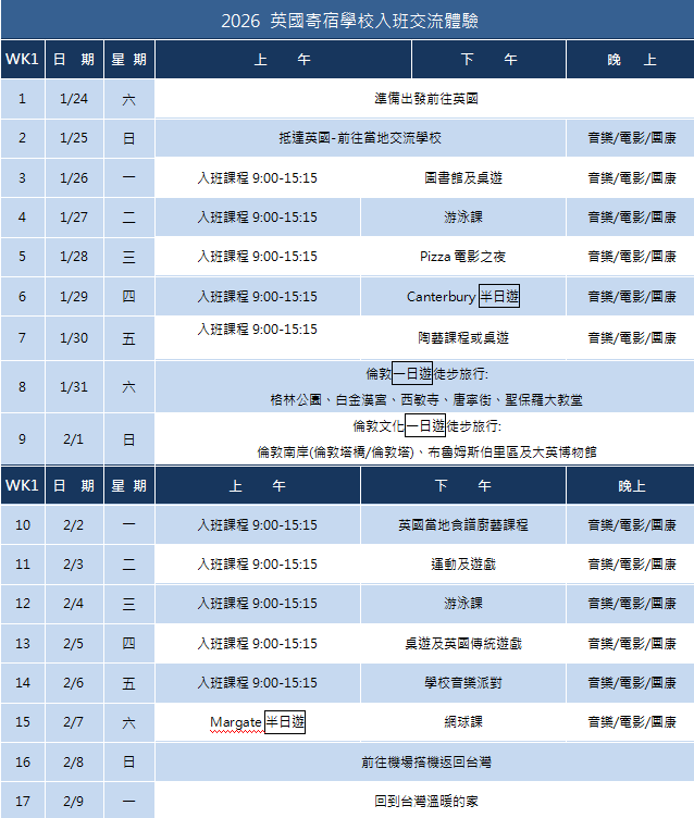 2026寒假 英國遊學團-英國寄宿學校入班交流體驗營 8-17歲