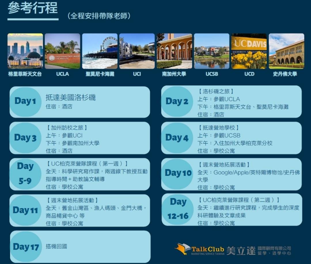 UC 柏克萊暑期營隊日程安排