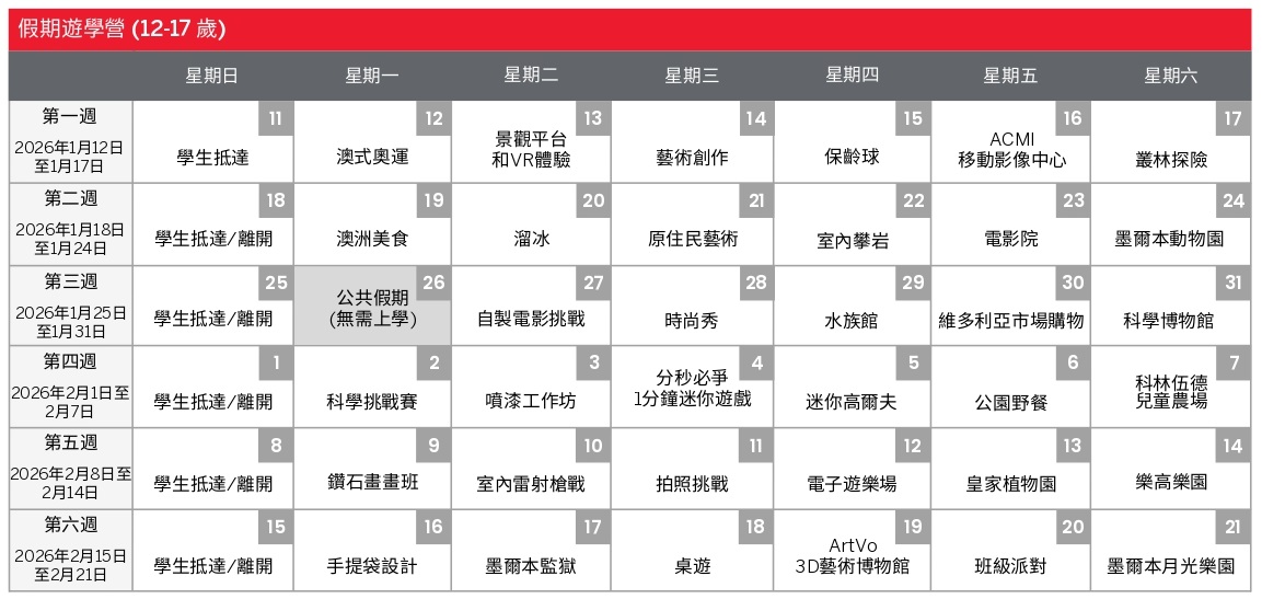 2026 澳洲墨爾本兒童/青少年冬令營 7-17歲