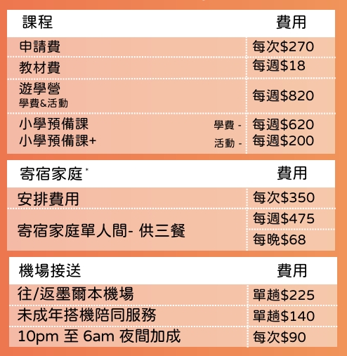 陪同遊學學生的監護人,可享有每週$295的優惠價格申請一般英文課程(Intensive General English),並且免申請費。