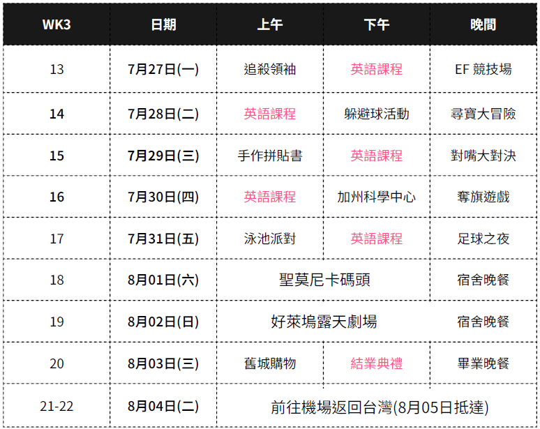 美國加州EF洛杉磯分校3週英語課程+每日超好玩營隊活動